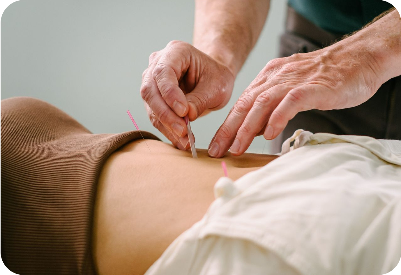 - Acupuncture treatments, using several thin needles, which typically target the spleen and stomach meridians